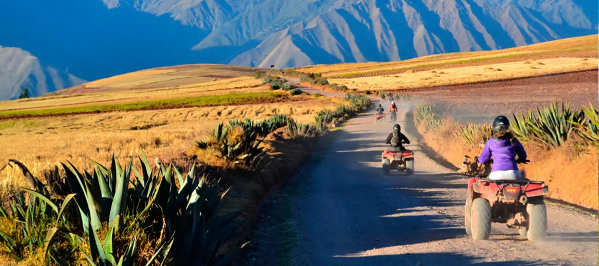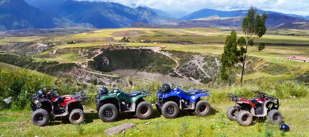 We will pick you up from your hotel for a 50-minute drive to the Cruzpata town, where we will have a safety briefing and training. Then you will be ready to ride the quad bikes from Cruzpata to Moray, where you will explore the ruins of the circular agricultural terraces known as Andenes; the Incas have used them to create different microclimates to grow a variety of crops. Then you will go back to Cruzpata town to park the quads and, immediately we will take our transport to the salt mines of Maras where your guide will explain to you how it used to be produced the salt in pre-Inca times. After that, you will return to Cusco. It will take another 50 minutes. The bus will leave you close to the hotel!