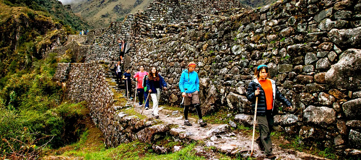 This day will be the longest; we will observe different archaeological sites during this walk. The first archaeological site we visit is the ruins of Runcurakay (3,760m/12,300ft). Unlike other buildings of Inca origin, the Runkurakay ruins have the peculiarity of having circular enclosures between their structures. After a short break, we walk for 1.5 hours to the archaeological site of Sayacmarka. Later we will arrive at our lunch point in Chaquicocha. After a short break, we will continue the trek for 2.5 hours and arrive at the following archaeological site of Phuyupatamarca (3,600m/11,810ft), also known as “The City Above the Clouds.” There are Inca ruins with five small stone baths, which during the rainy season contain constant fresh running water. From there, we begin our 3-hour descent to our Wiñayhuayna camp, where we will have dinner and spend the night. It will be a memorable night because the time has come to say goodbye to the porters.