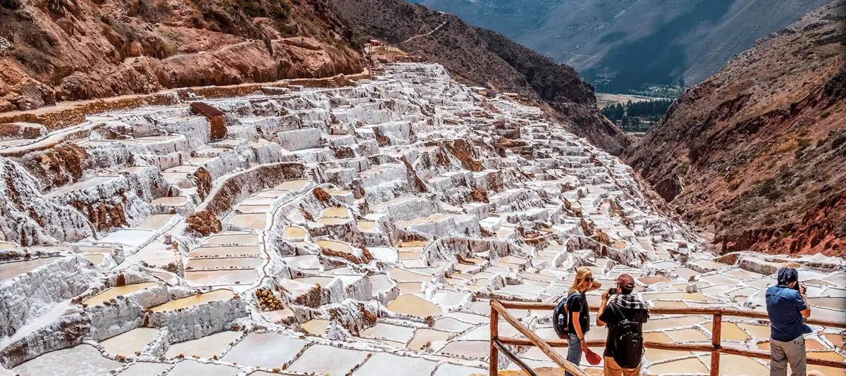 When we finish exploring Moray, we will board the bus to the salt mines of Maras. This town is known as an ancient center of salt production and is believed to date back to pre-Inca times. More than 3,000 salt pits are carved into the mountainside, filled daily by a stream of water.
