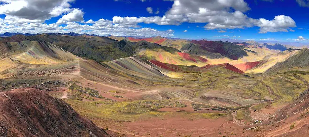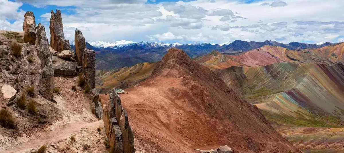 The tour to the Palcoyo Mountain begins with the pick-up between 05:30 am to 06:00 am; once everyone is on the bus, we will go to the south of the city of Cusco. The trip will be approximately 3 hours until the starting point, and the hike will take about 45 minutes until we reach Palcoyo Mountain, where we will have the best view of the mountains and the forest of stones. In front, we can see the highest mountain in Cusco called Ausangate, at 6400 meters above sea level; after this, we will descend for 45 minutes to take the transport and go to Cusipata village, where our buffet lunch awaits us.