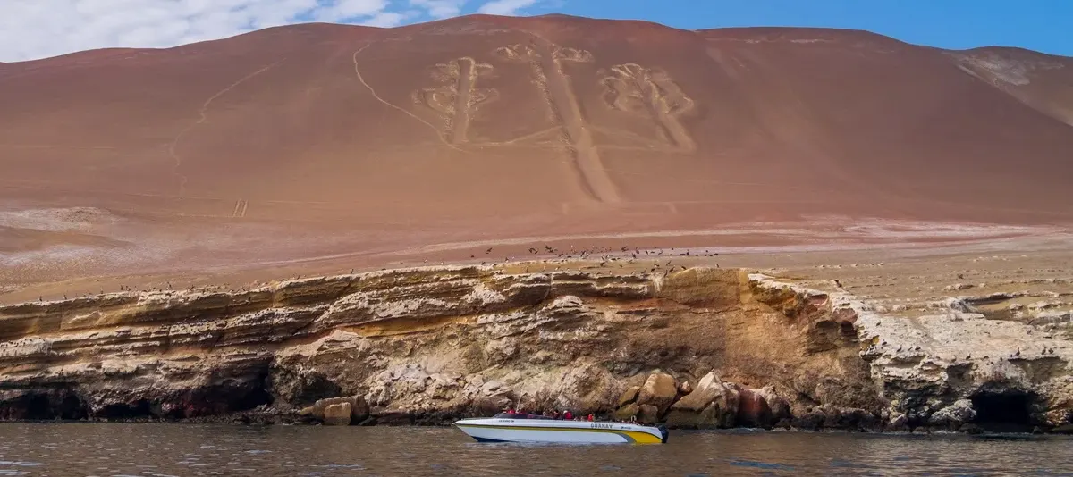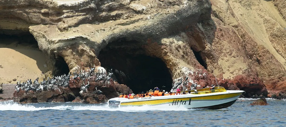 The tour starts at 05:00 am, picking you up from Miraflores (Larcomar) towards the Port of Paracas, where we begin our tour in modern sliders heading to the Ballestas Islands to observe the port of Pisco and the mysterious Chandelier located in the Bay of Paracas.